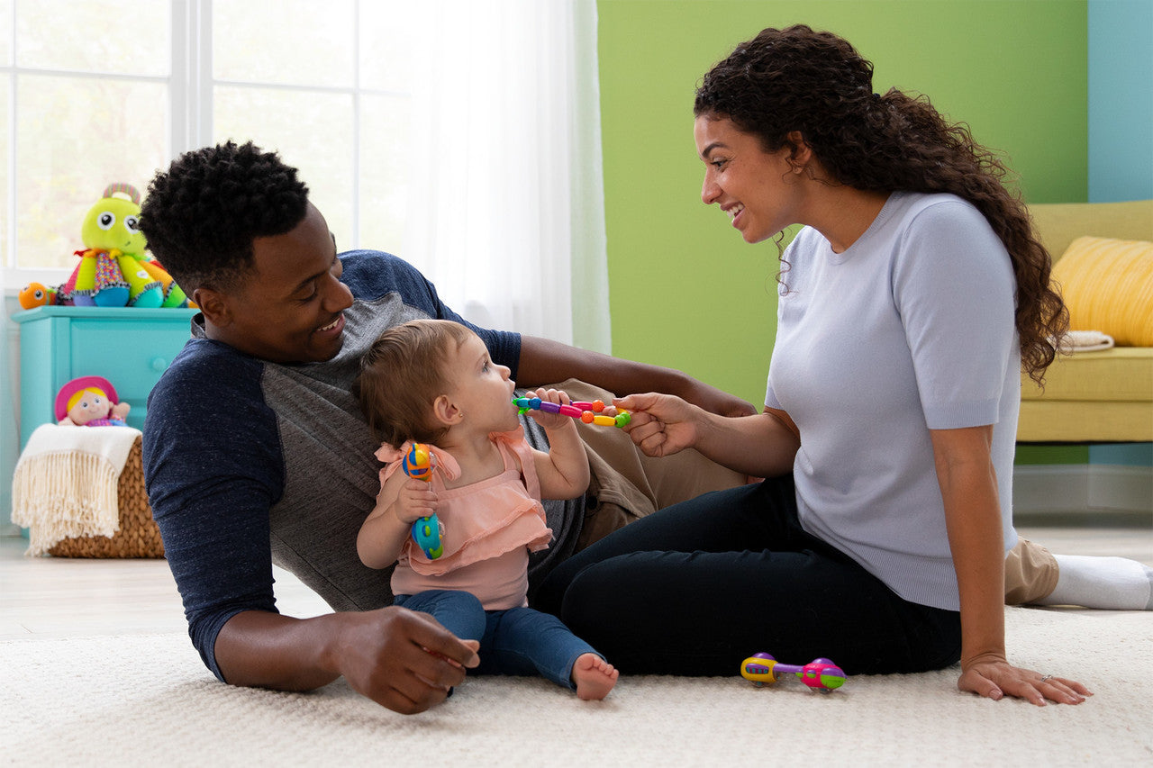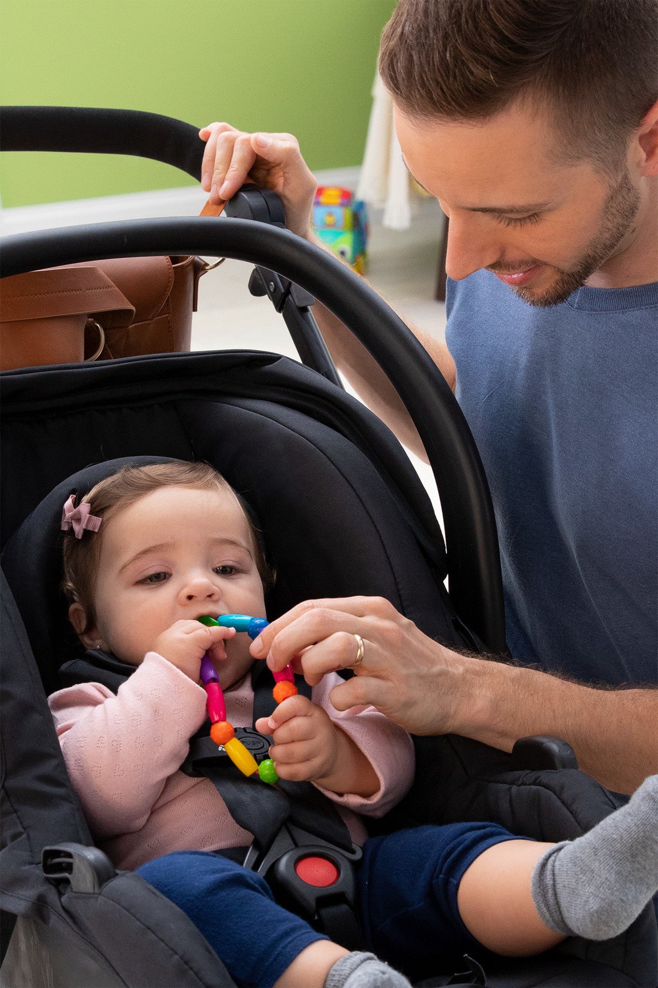 Every baby needs some baubles! The Lamaze Bright Beads Baby Toy gives your baby something fun to explore. The bright colors stimulate baby’s attention and visual perception, while the multiple beads with different textures help baby’s tactile development and sensory processing. The textured shapes are also help to soothe baby’s sore gums as they explore with their mouths. The ideal size for babies to grab and hold, this baby toy is great for promoting fine motor skill development. And the size makes it easy to toss into the diaper bag for on-the-go play!