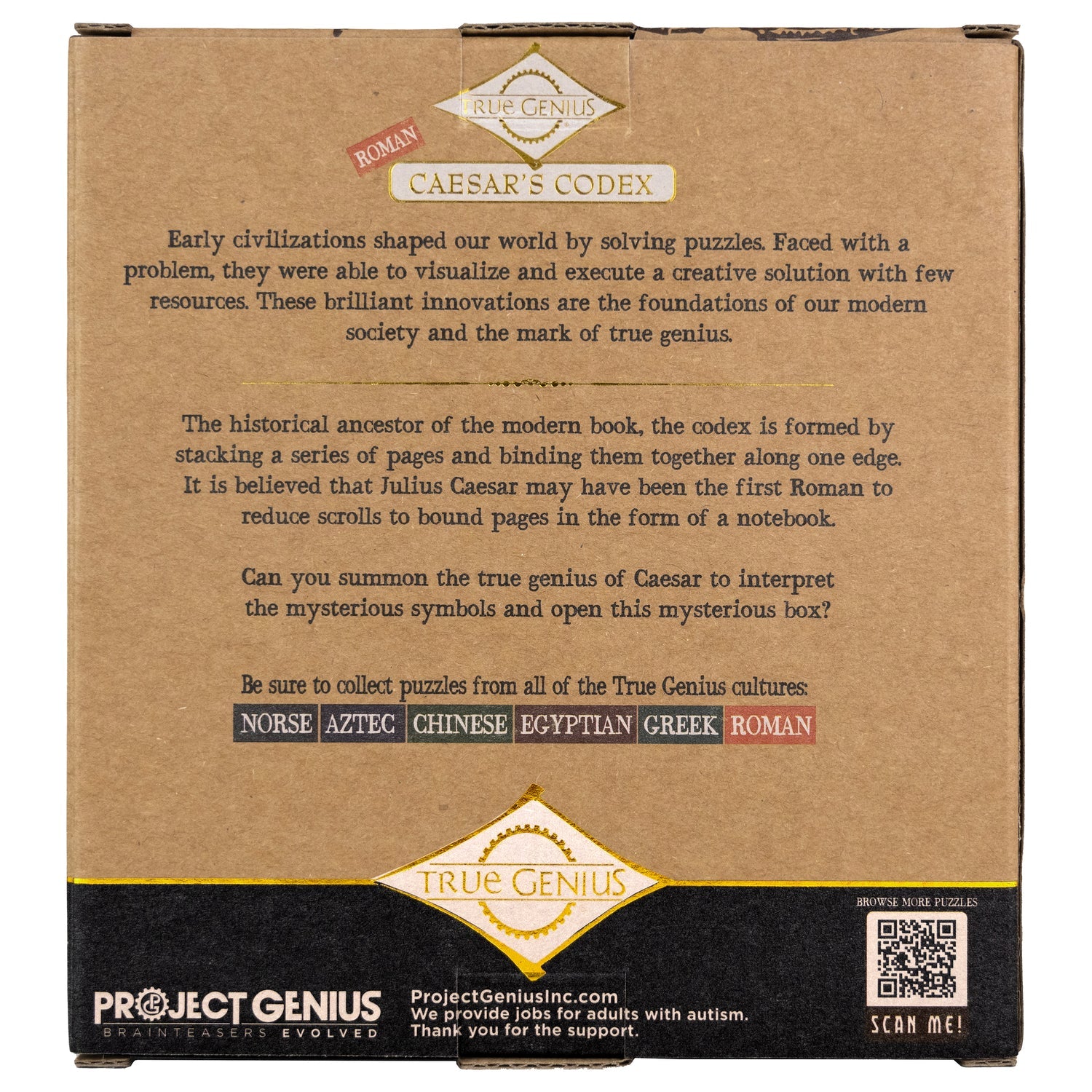 Perfect for puzzle enthusiasts and history buffs, this box will keep your mind engaged and your curiosity piqued. Can you summon the genius of Caesar and open the Codex? Very unique quality puzzle!