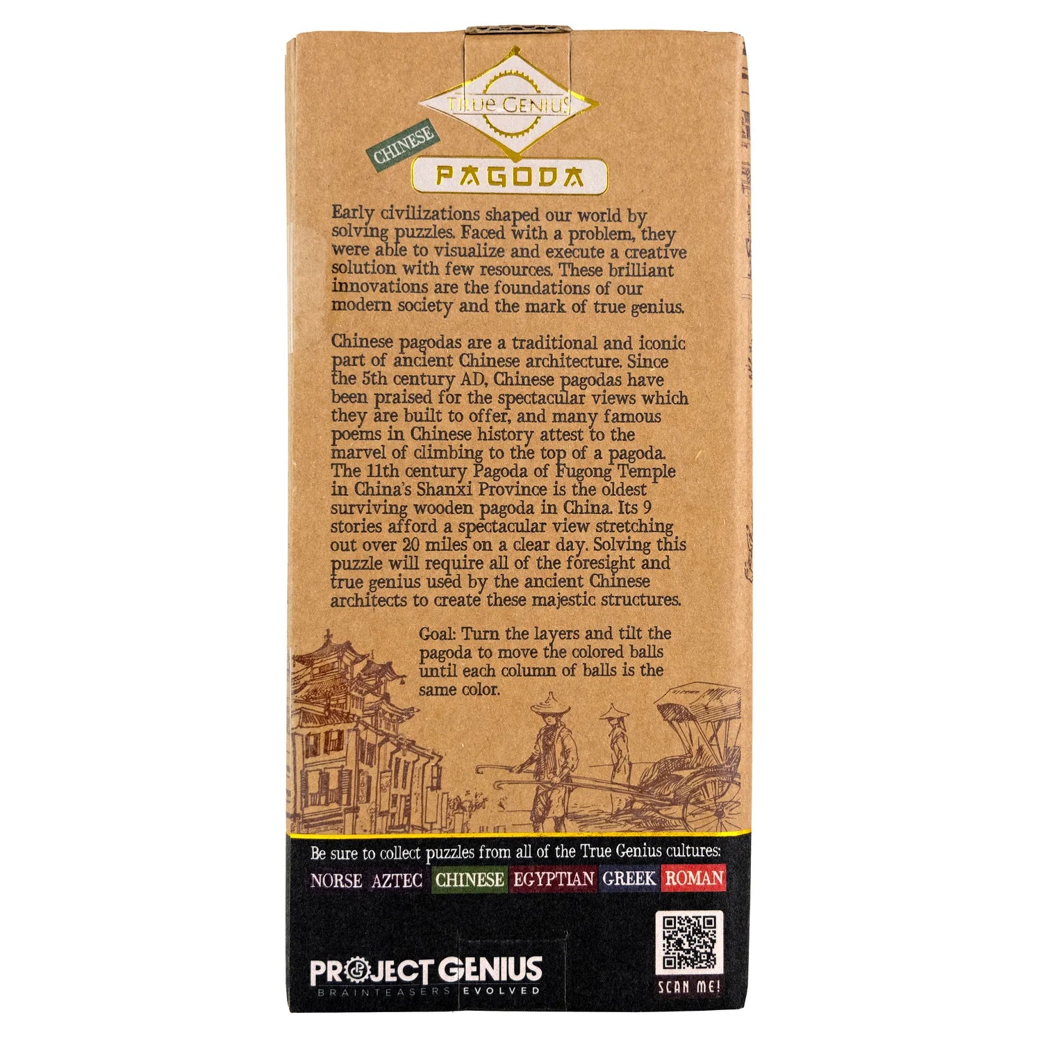 Experience the architectural wonder of ancient China with the Chinese Pagoda puzzle. Inspired by the iconic multi-tiered pagodas that have stood as symbols of Chinese culture since the 5th century AD, this intricate brainteaser challenges you to tilt and turn the layers of the tower to move colored balls into perfectly aligned columns.