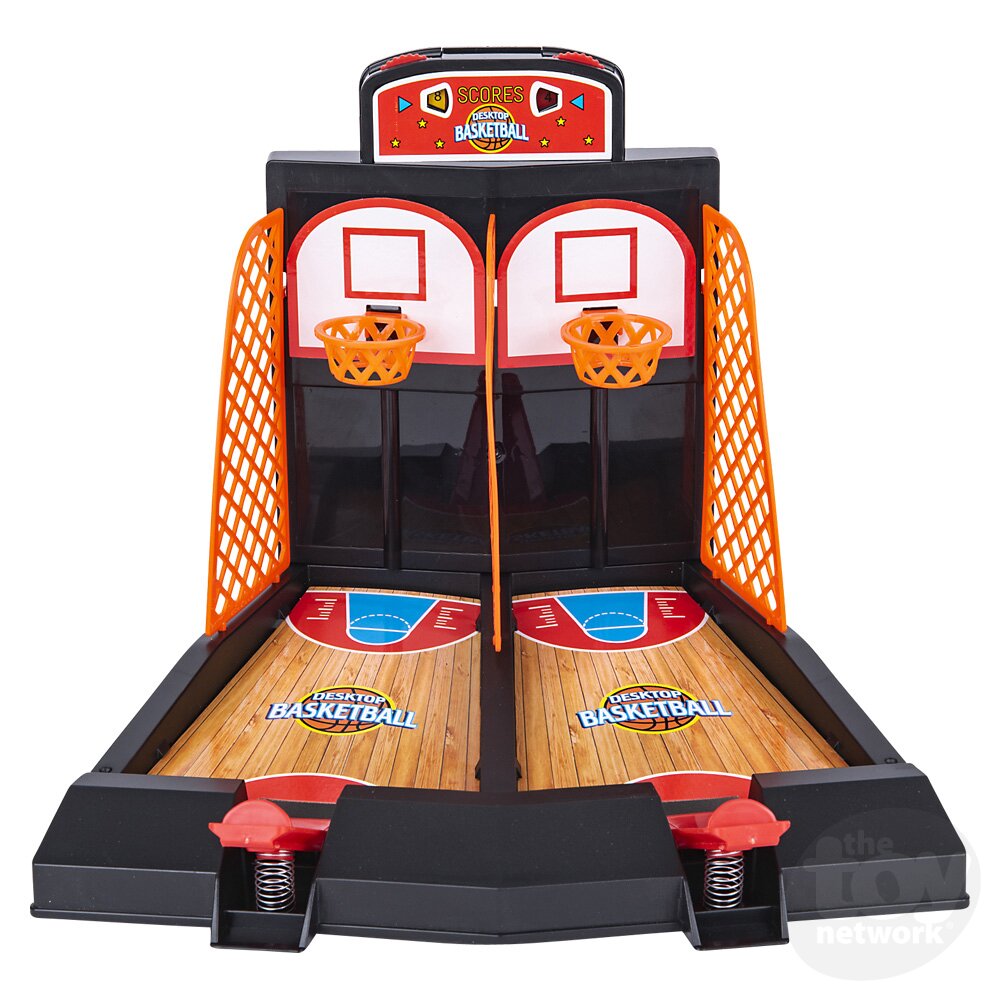 Desktop Basketball set is a launch-and-shoot game that is double-sided for competitive gameplay. The "court" is nine inches long for the perfect desktop challenge.