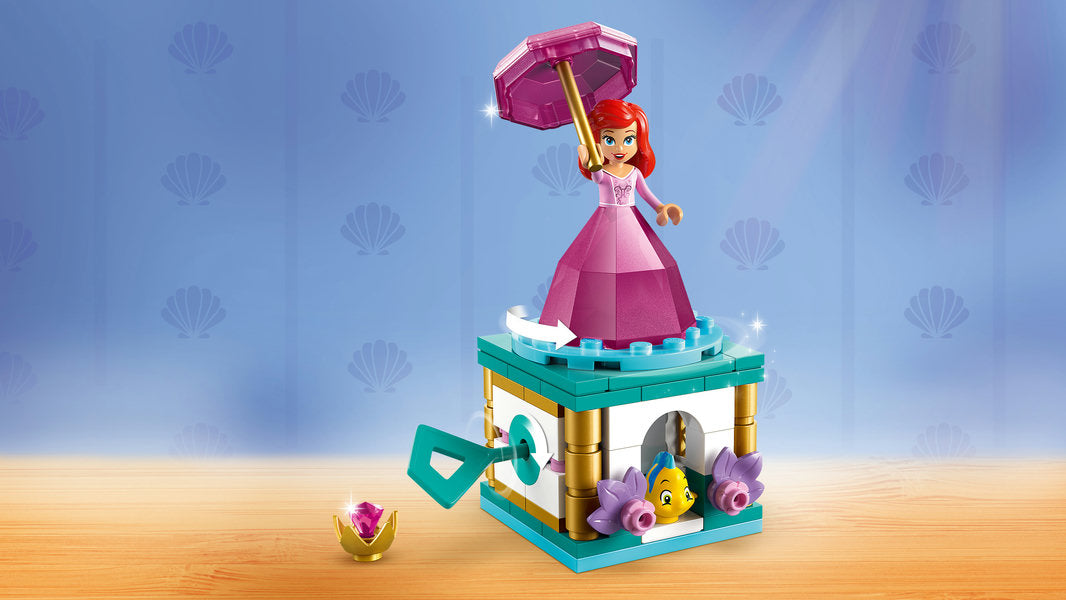 • Engaging building toy – Turn the key on the stand to spin the plate and twirl Ariel around, then store the LEGO® ǀ Disney mini-doll figure inside the ’diamond’ dress using the umbrella as a lid